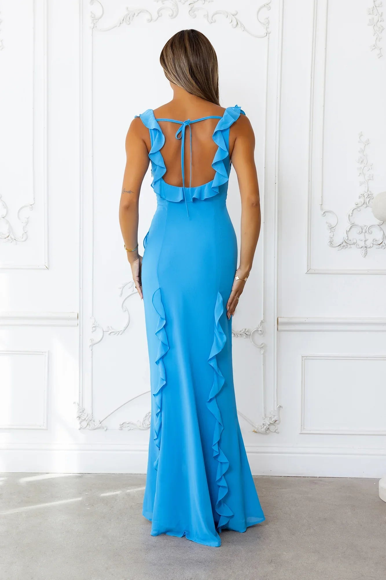 The All Night Affair Maxi Dress is the perfect blend of elegance and allure, featuring frill details and a flowy skirt that moves with you. The split to the skirt adds a hint of drama, while the open back with tie detailing creates a stunning finish. Style it with heels and a statement clutch for an unforgettable evening look!
