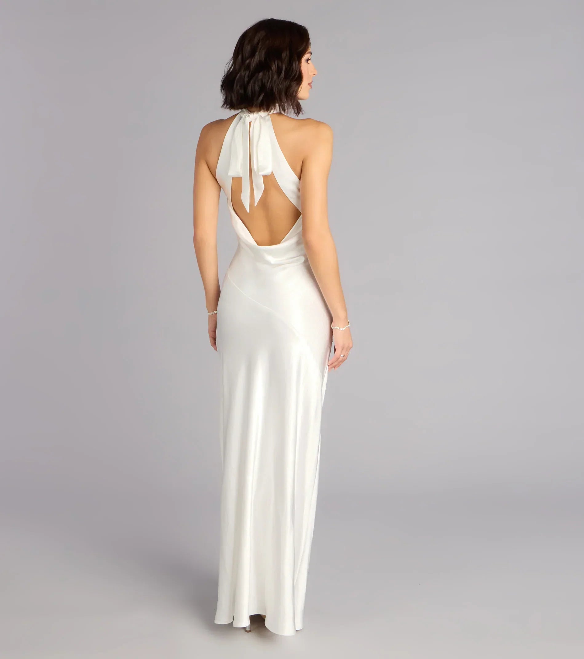 The Andie satin formal dress is where elegance becomes effortless. Designed with a head-turning open back design and high front slit, this floor-length dress boasts plenty of allure!