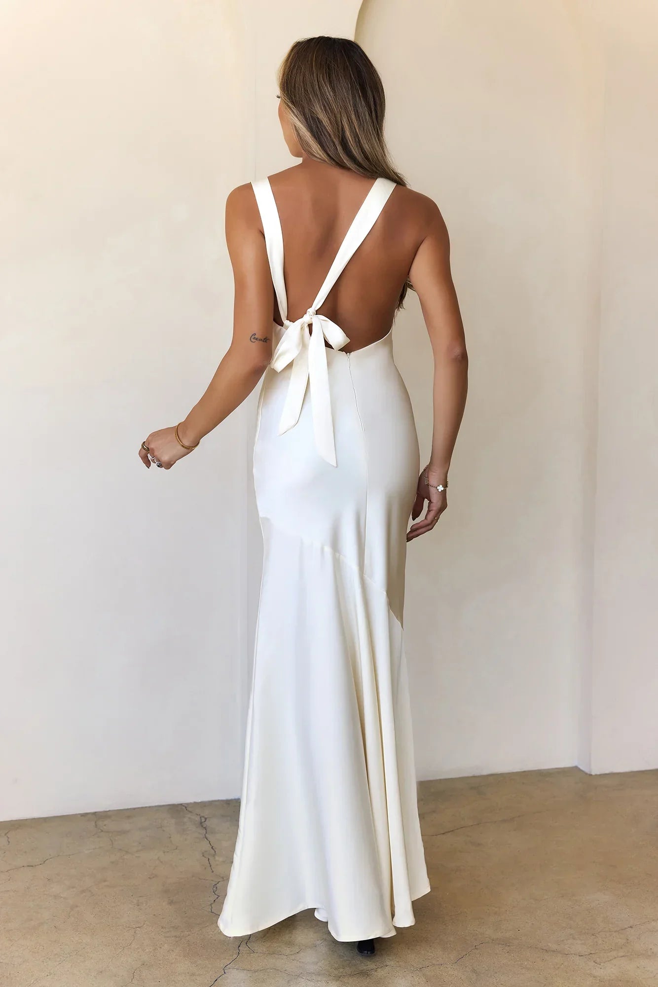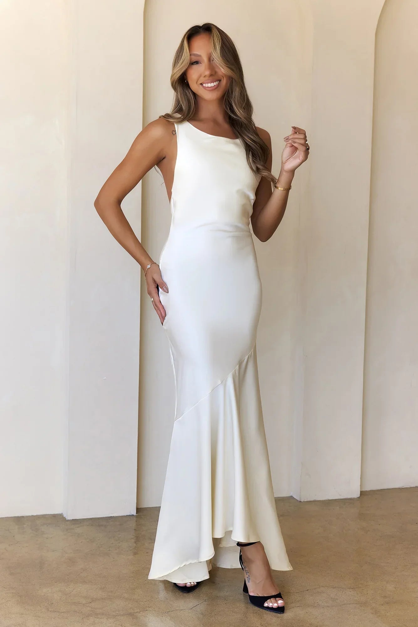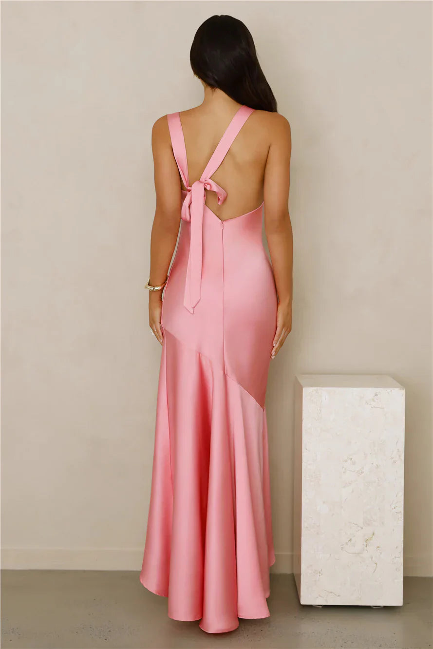 The formal dress of your dreams is here! The Bespoke Beauty Satin Maxi Dress features a gorgeous satin silhouette, tie-up shoulder straps to the back and a high-low skirt. Style with heels.