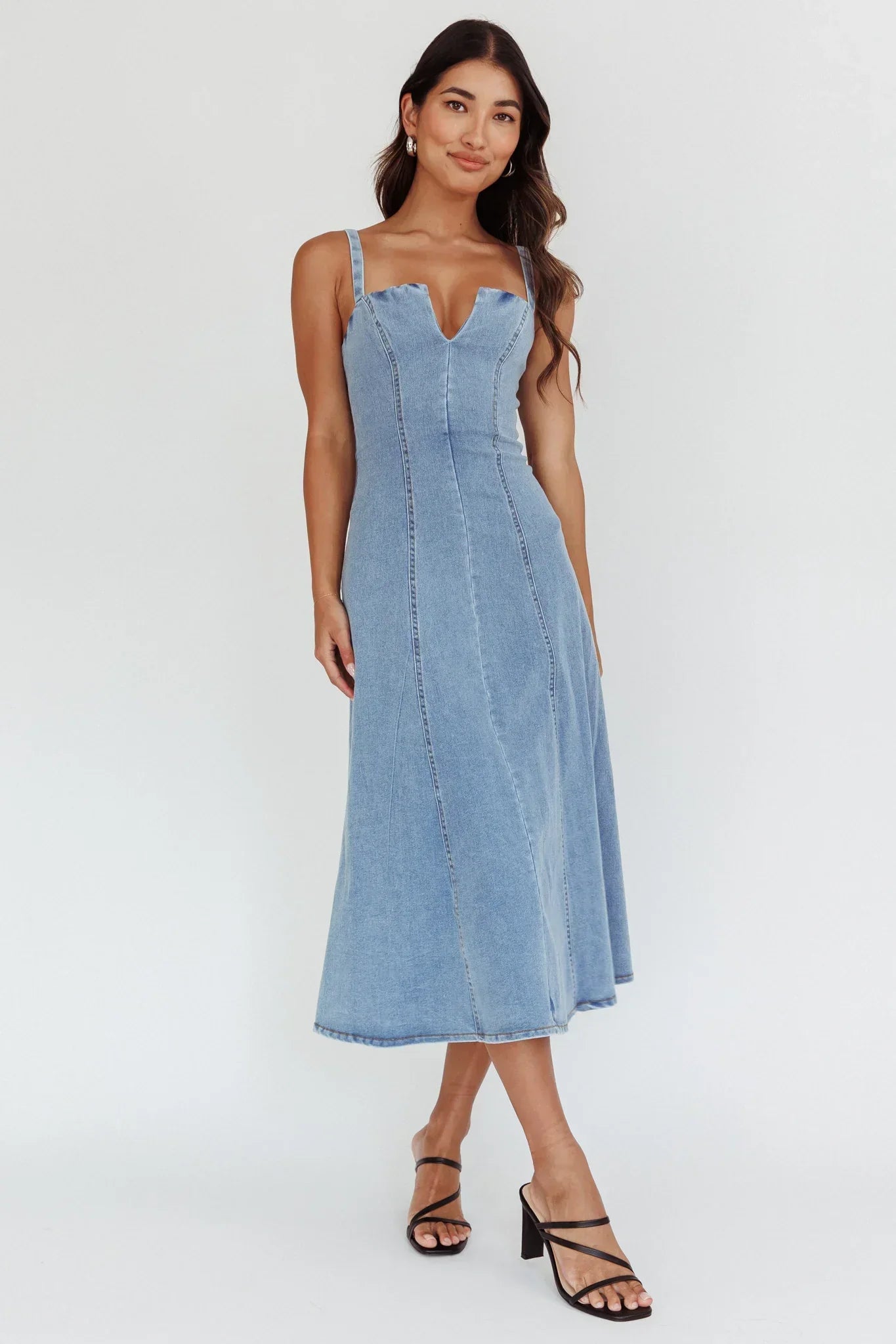 You will steal the show in our gorgeous Catch My Drift midi dress. We are majorly crushing on its feminine silhouette and sexy V-cut-out in the neckline. Perfect for a flirty date night teamed with strappy, tan heels and gold hoop earrings. Super cute!