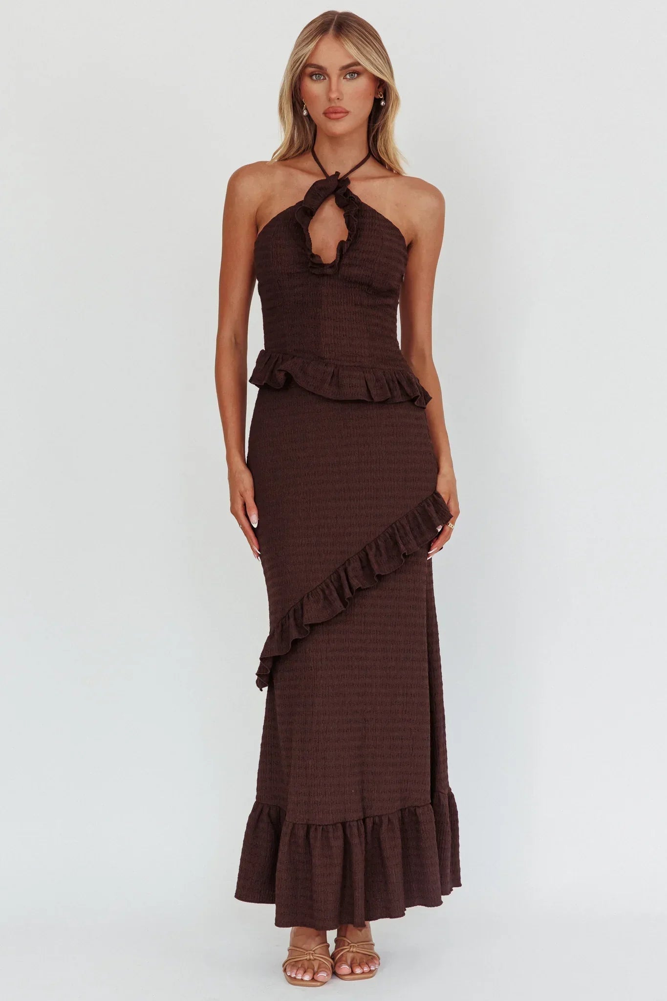 You will feel like a goddess in our stunning Clemence maxi dress. We are in love with its figure-hugging fabric and frill trim. Perfect for a wedding or special birthday soiree! Team it with strappy, nude heels and a clutch for an unforgettable look.