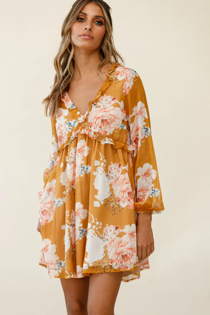 Hey there, cutie! You'll be turning heads in our Cutie Pie babydoll dress. Partially lined, it features long sleeves, elasticated cuffs, a V-neckline and frill trim detailing in the bust. Perfect for a mall day with the girls teamed with tan cowgirl boots and a slouchy tote.