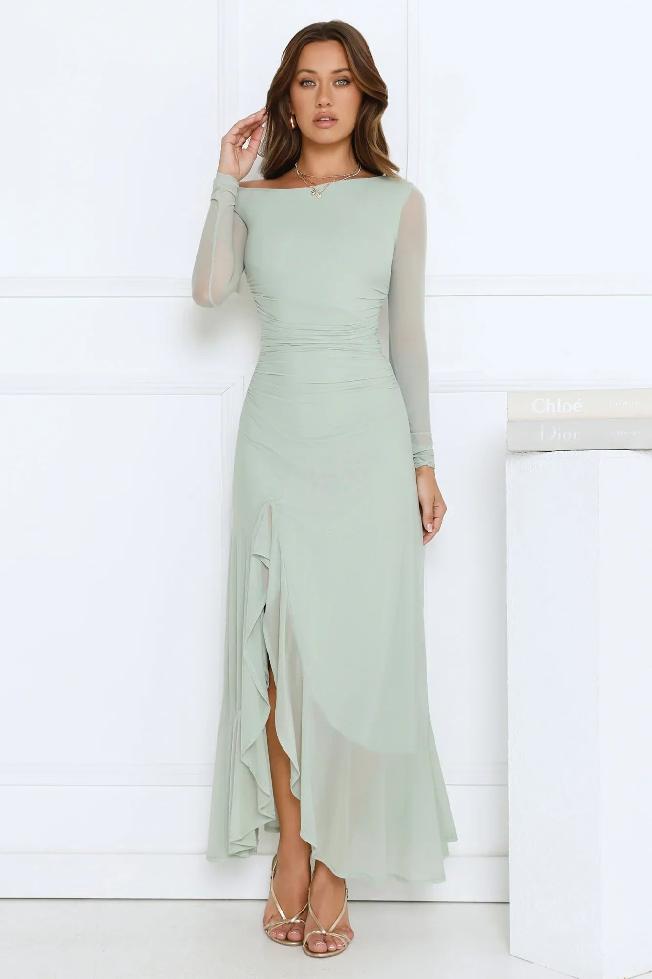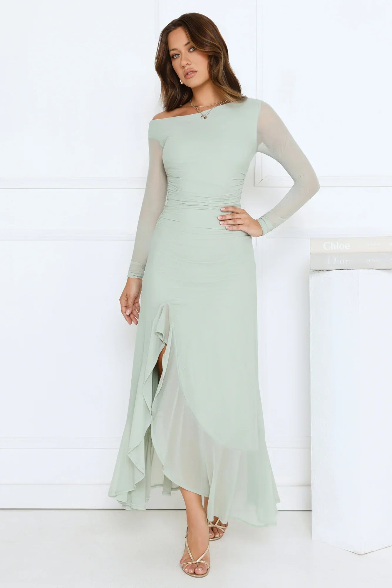 Make a statement in the Darling At Dusk Long Sleeve Maxi Dress. Made in stretch mesh with a shoulder cutout, sheer long sleeves, and a frilled split skirt, this maxi is perfect for parties, date nights, or special occasions. Pair with strappy heels and jewellery to complete the look.