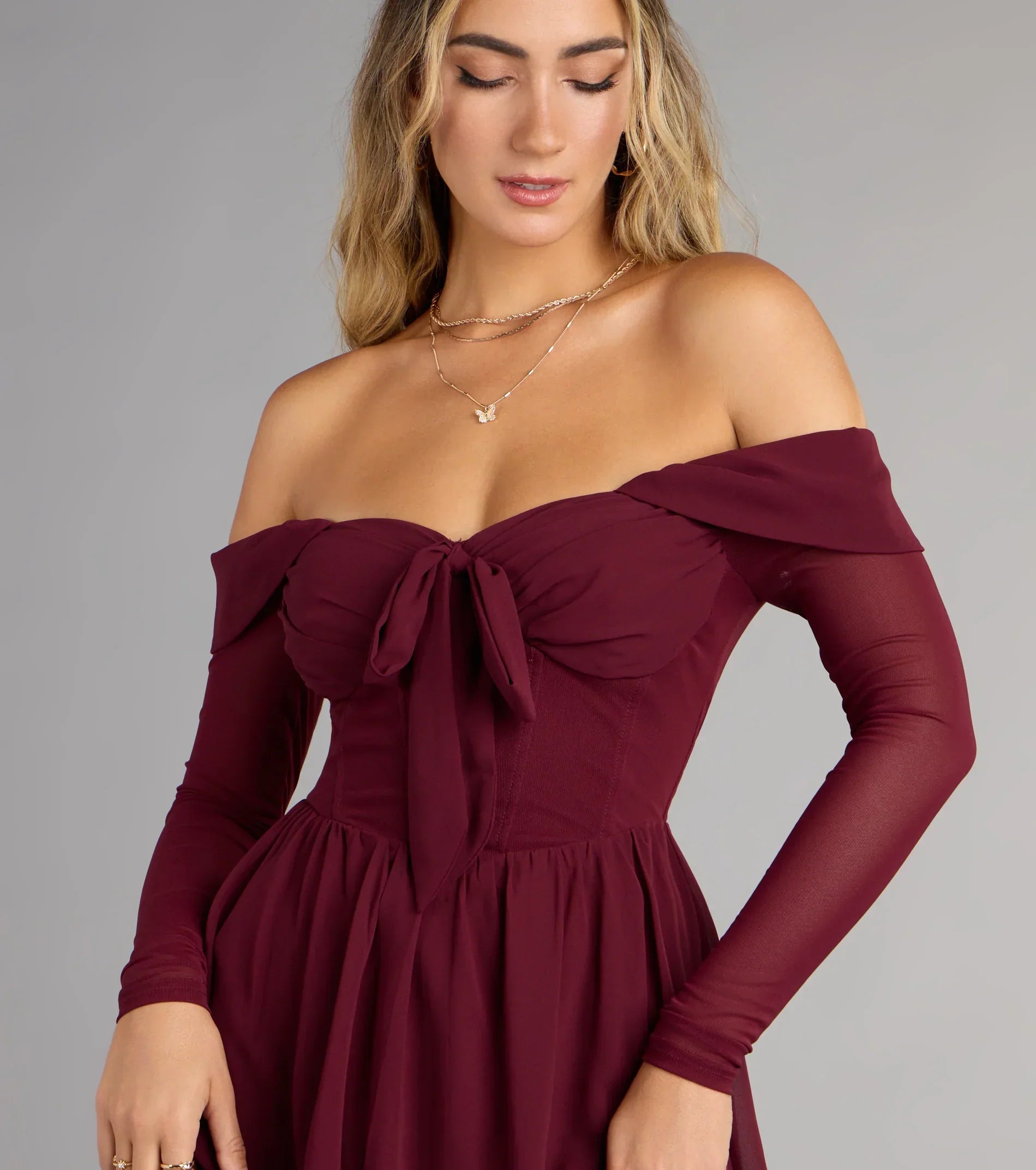 Soft glam feels with a playful twist—this chiffon mini dress is pure romance. The sweetheart neckline and sheer sleeves make it flirty, floaty, and perfect for your next content-worthy outing.