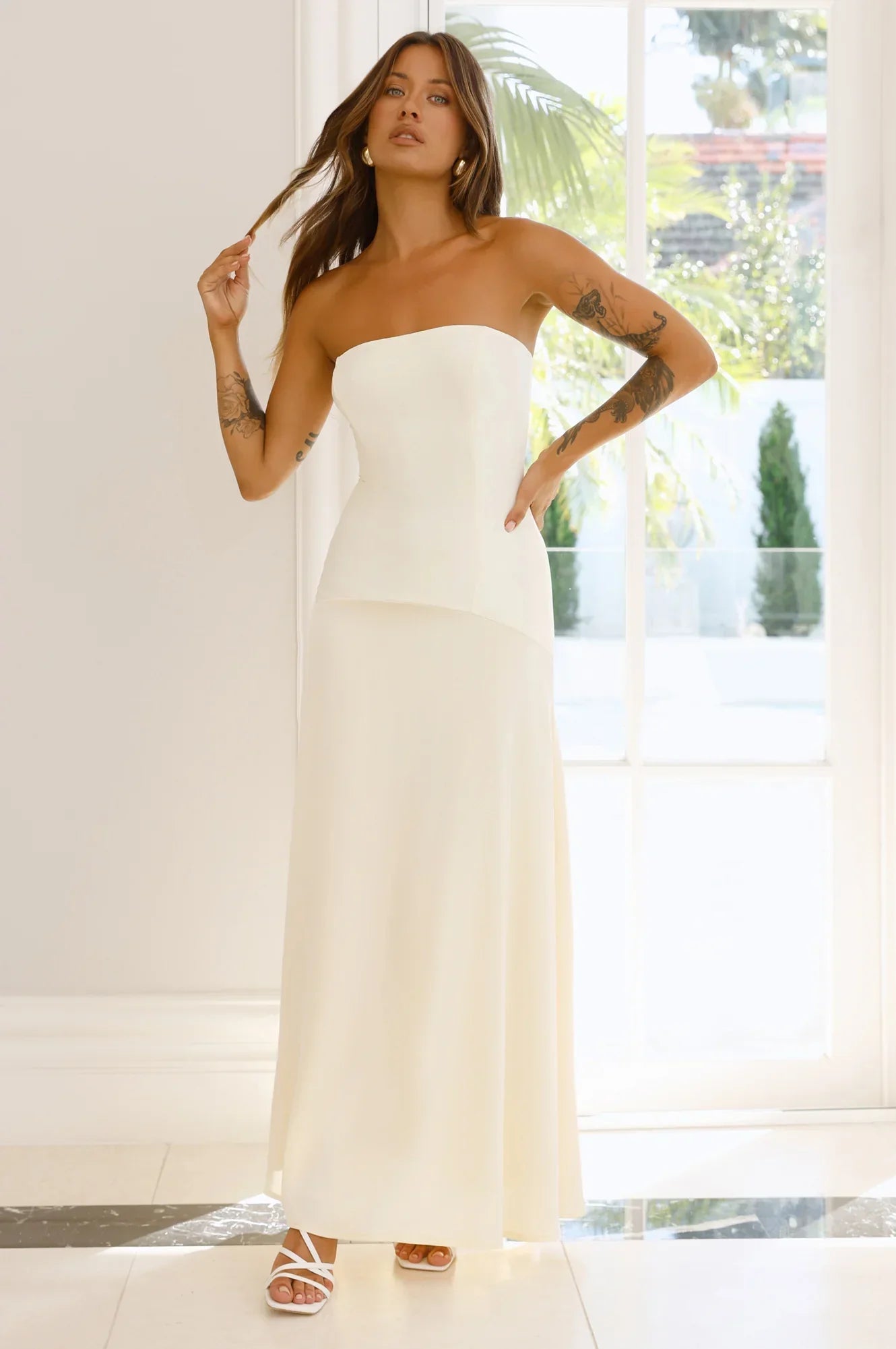 The Daydream Darling Strapless Maxi Dress is your golden hour go-to, featuring a structured boned bodice with a stretch top and flowing skirt. Strapless and effortlessly romantic, it's perfect for making dreamy entrances all season long.