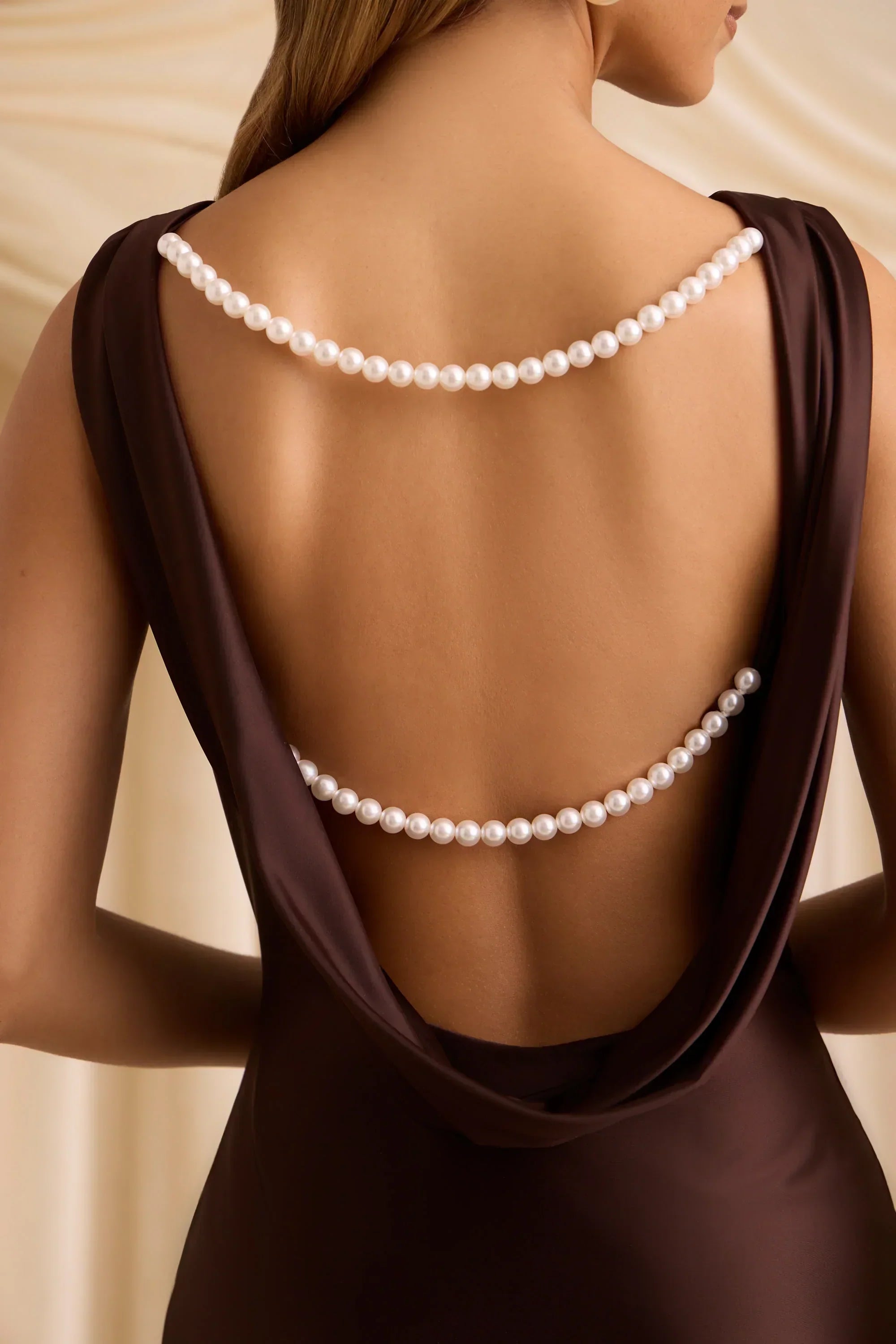 Designed to bring the drama this festive season and beyond, the Monnie mini dress is crafted from high-shine soft jersey to an A-line silhouette with a stunning low cowl back anchored with lustrous, detachable faux-pearl straps. It features a built-in boat-neck bodysuit that hugs your curves and a draped A-line mini skirt that creates the look of elevated separates for a sultry yet statement take on party dressing.