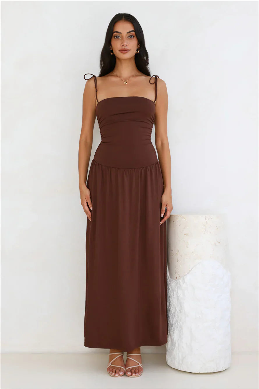 An effortlessly stylish silhouette you'll want to wear for every event. The Dream Strides Maxi Dress features tie-up shoulder straps and a flowy skirt. Style with heels for a look we love.