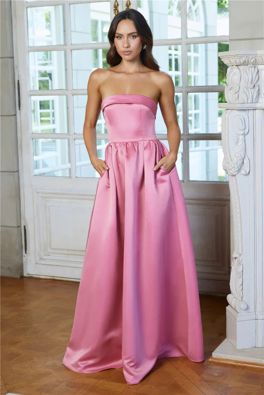 Exclusively designed for the ultimate confidence. The Elegance In Motion Strapless Maxi Dress features a fitted bodice, a folded neckline and a flared skirt - we're in love with this statement design! Style with heels and curls for a fancy event.