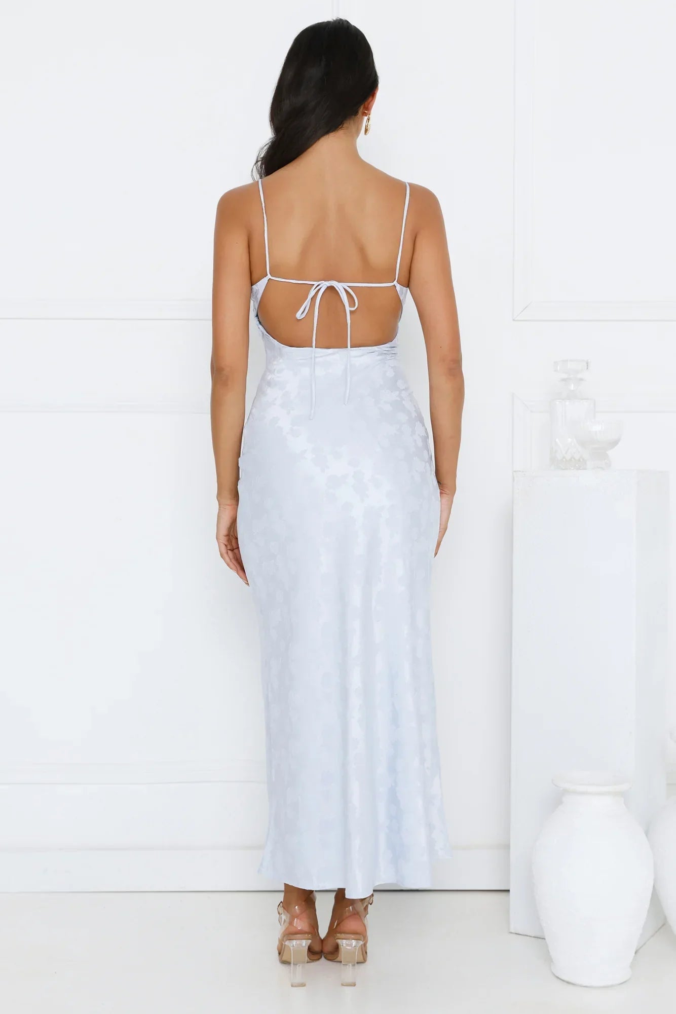 Lovely, this style is classy and sophisticated. The Floral Kiss Satin Maxi Dress features a gorgeous silky silhouette with a floral textured pattern and an open back with a tie detail. Style with heels to turn heads in the best way possible.
