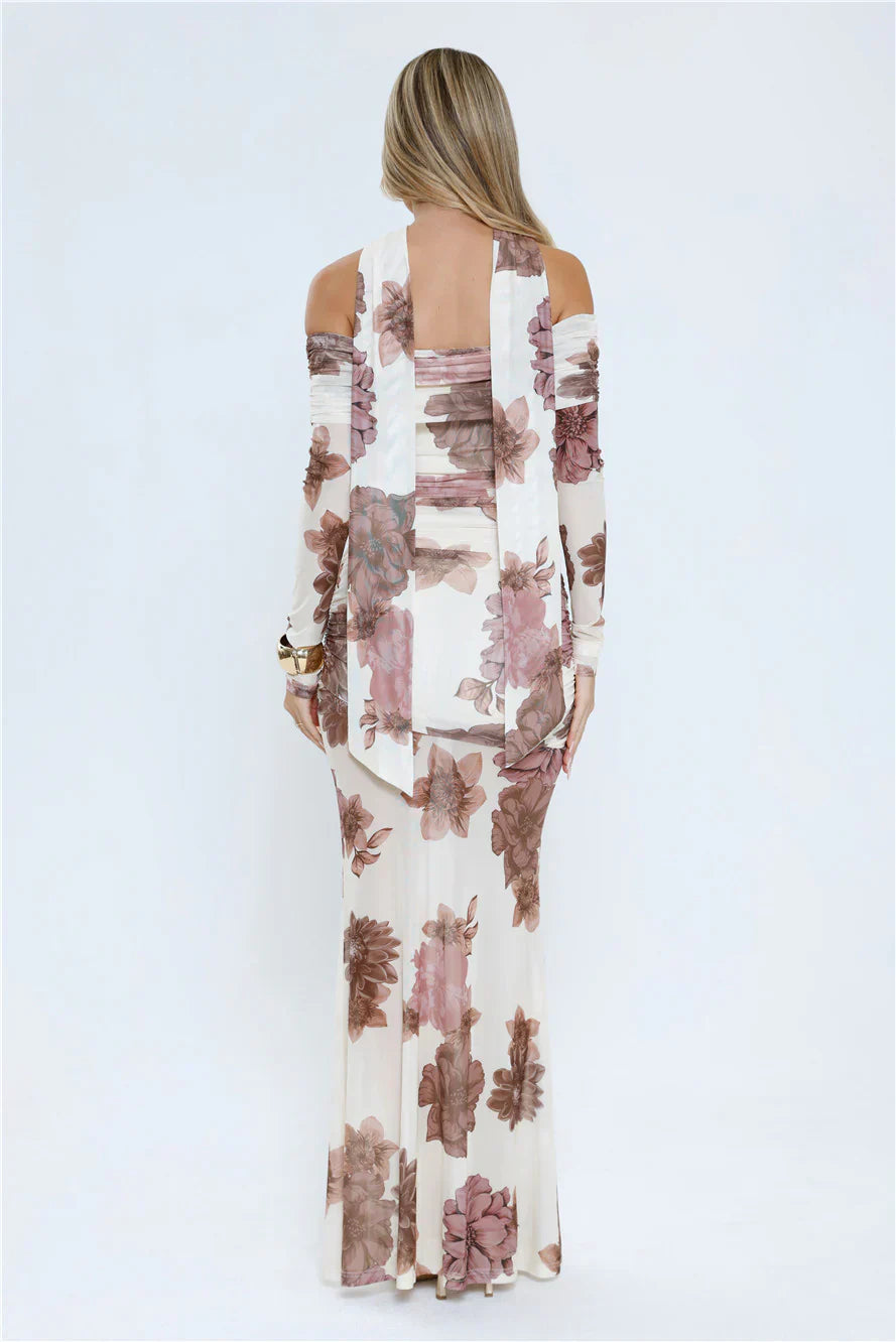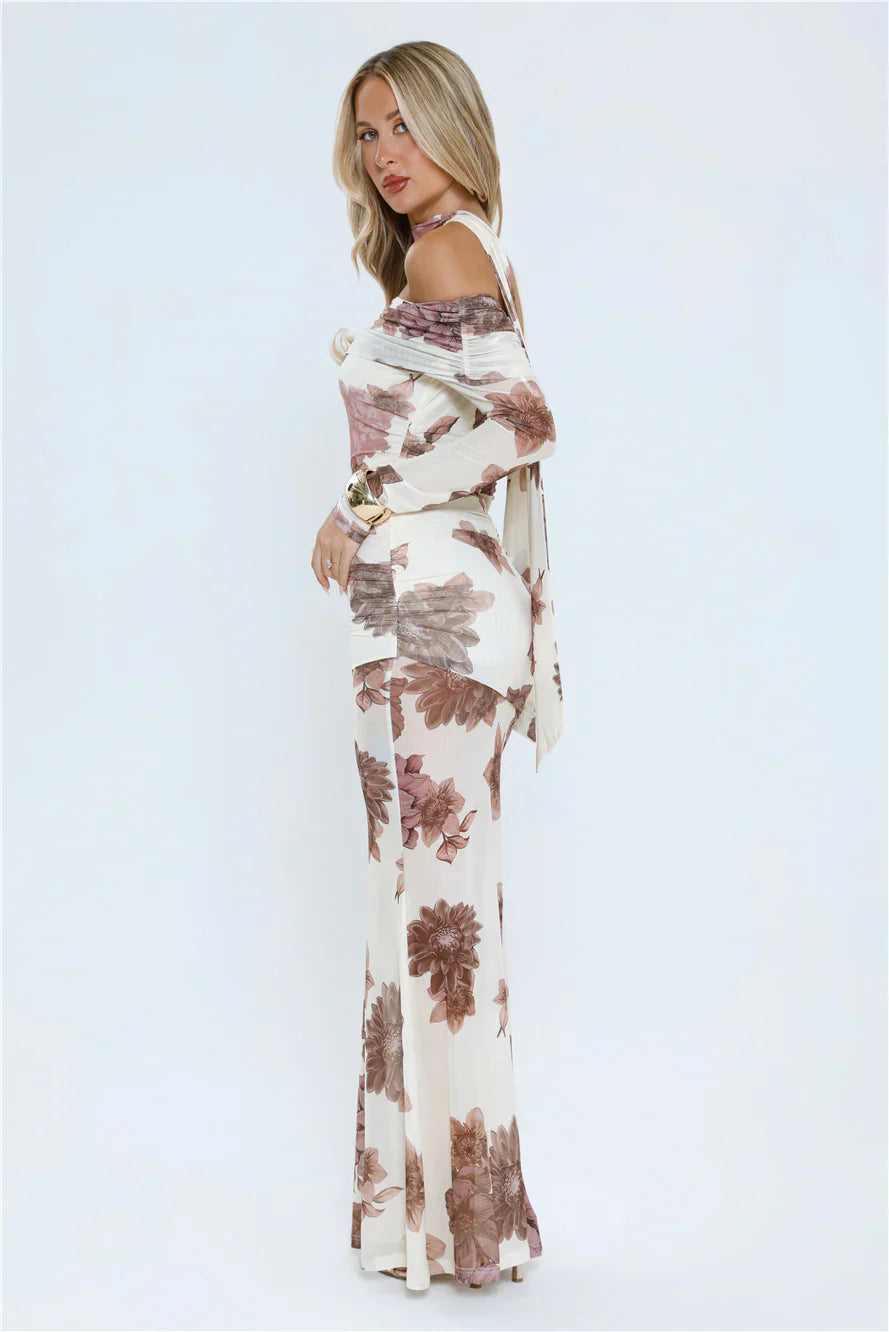 Make a statement in the Garden Haze Off Shoulder Mesh Maxi Dress. Featuring mesh fabric, an off-the-shoulder neckline, a neck scarf, sheer details, and a floral print, this maxi is perfect for garden parties, brunches, or special occasions. Pair with strappy heels and delicate jewellery to complete the look.