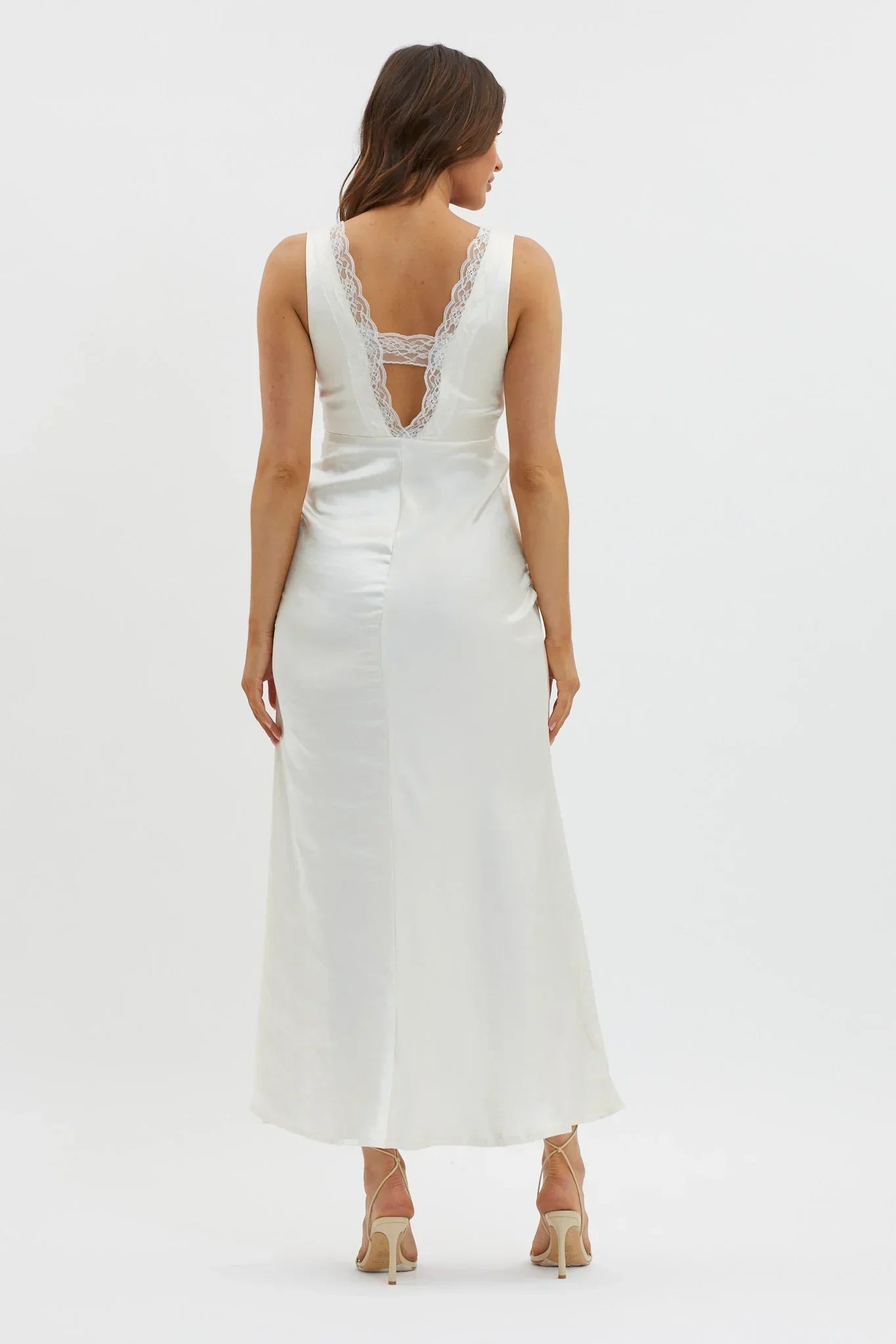 Make them stop and stare in our gorgeous Ivonne maxi dress. We are in love with its pretty lace trim! Perfect for bridal events or a special occasion teamed with nude, strappy heels and a clutch for a look that will have you flooded with compliments.