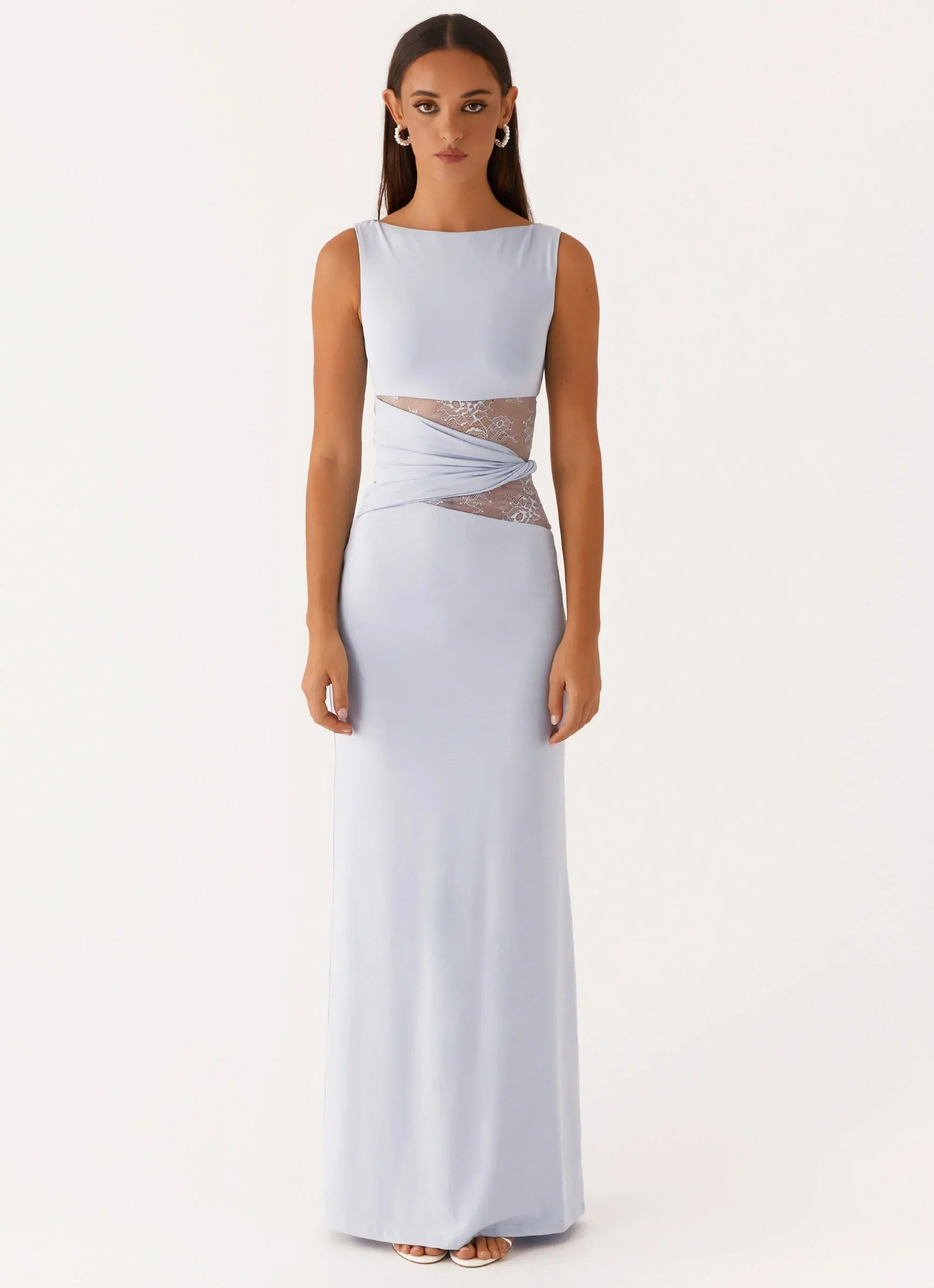 The Karma Maxi Dress features a rounded neckline and twist side detailing, adding a flattering touch to its sleek silhouette. Made from stretch jersey fabric, it offers both comfort and style, while the self-lined construction ensures a smooth fit. Perfect for any occasion where you want to look effortlessly chic.