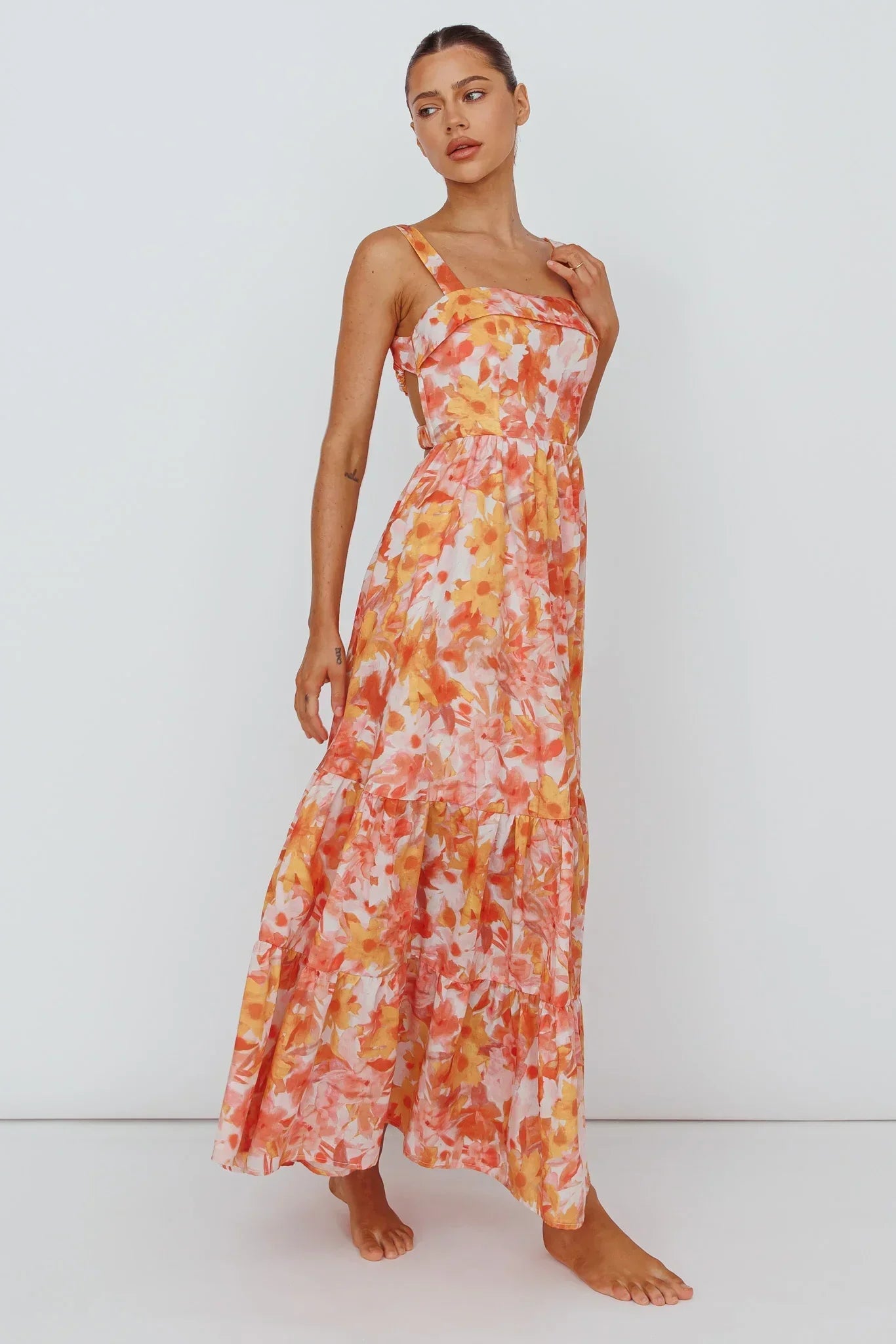 Float through your day in our gorgeous Lisseth midi dress. Featuring elastic straps in the back and a pretty floral print. It's perfect for Sunday Brunch with your girls. Team it with mules and a tote for an on-trend look we are living for.