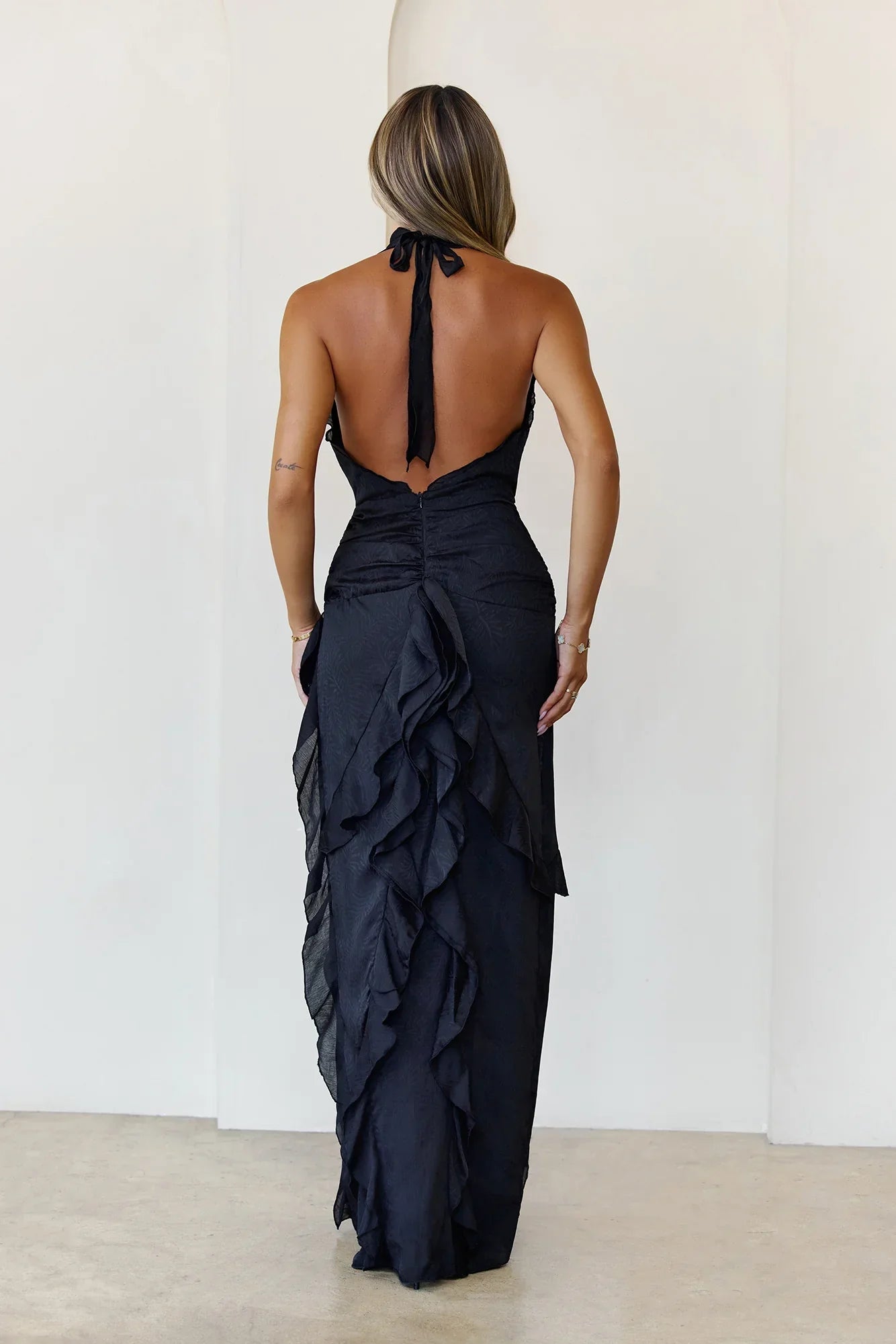 Enter the party and impress in the Luxe Mood Halter Maxi Dress. Featuring a gorgeous V-neckline, a halterneck tie and a split to the skirt. Style with heels and curls.