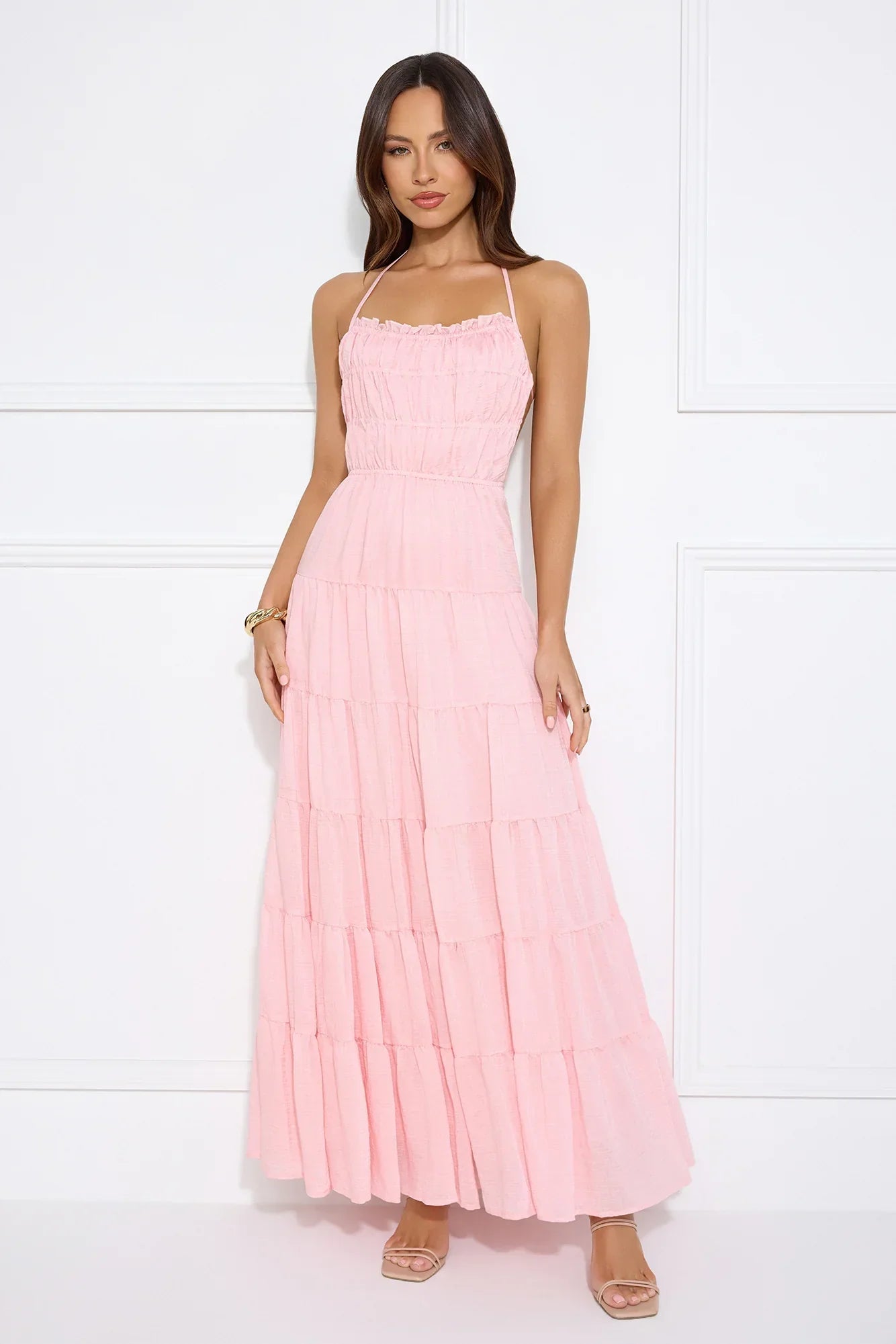 Your new go-to dress is here, lovely. The Make Up Halter Maxi Dress features an elastic bodice and back, a flowy skirt and a halterneck. Style with sandals for a summertime ' fit.