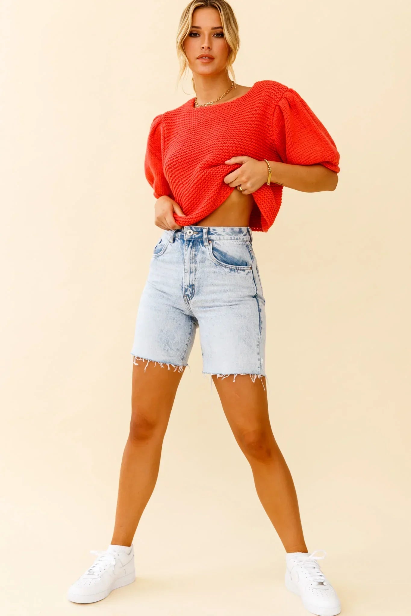 Hey, cutie! Watch heads turn as you strut by in our adorable Marla top. We are in love with its puff, half sleeves and chunky knit throughout. Perfect for your 9-5 or weekends strolling the Farmers' Market. Team it with jean shorts and sneakers for a chic casual look we are loving.