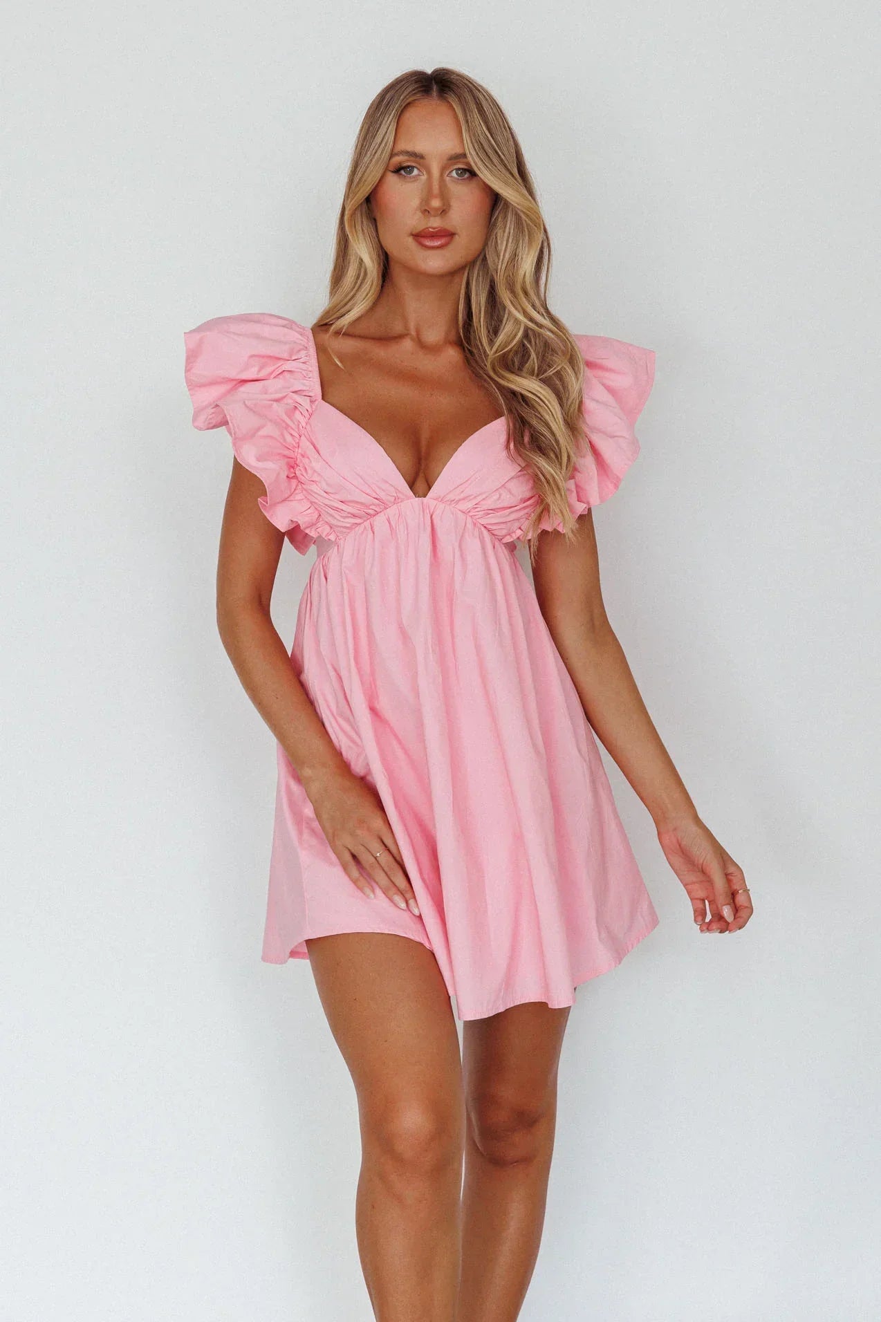 You'll look like an angel in our ethereal Marlina mini dress. We are in love with its babydoll silhouette and super cute ruffle sleeves. Perfect for a birthday party or date night. Team it with white, tie up heels and a purse for a look that's straight from Heaven.