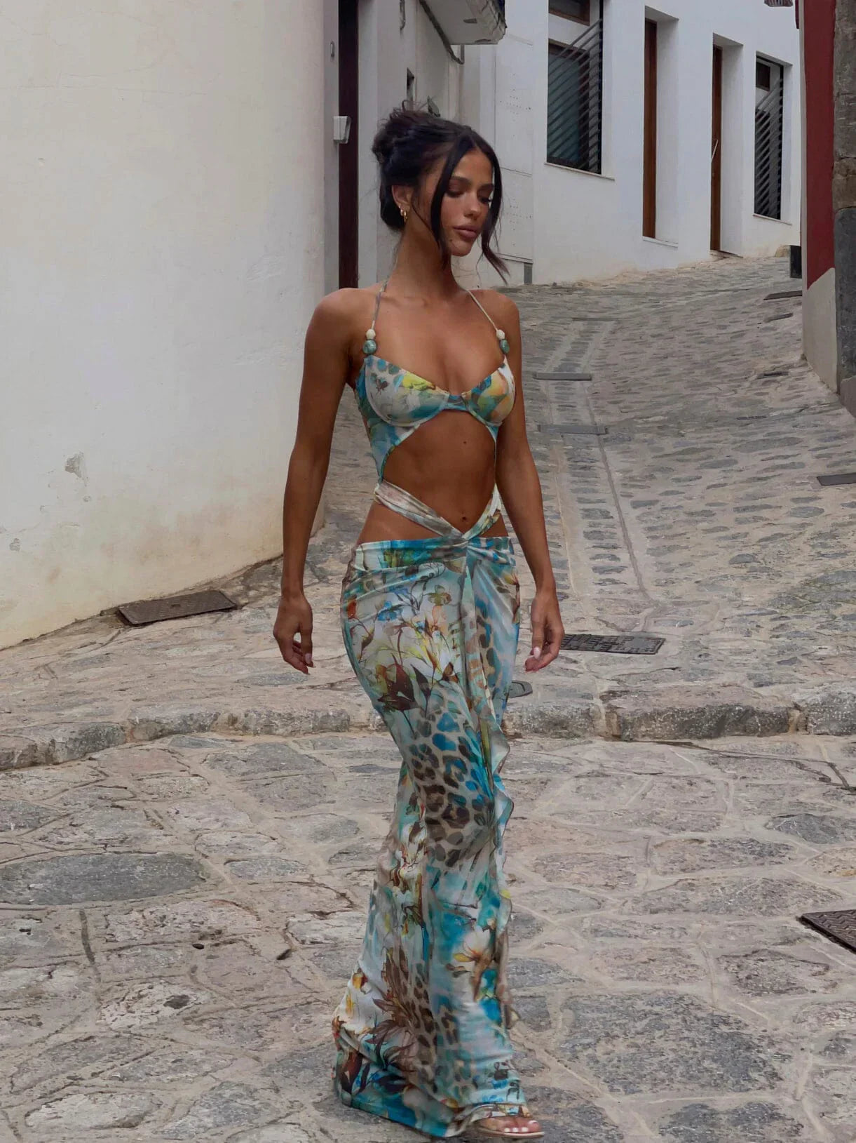 Dreaming of a Euro summer in the 'Meilani Maxi Dress' featuring our exclusive Amazonia print!