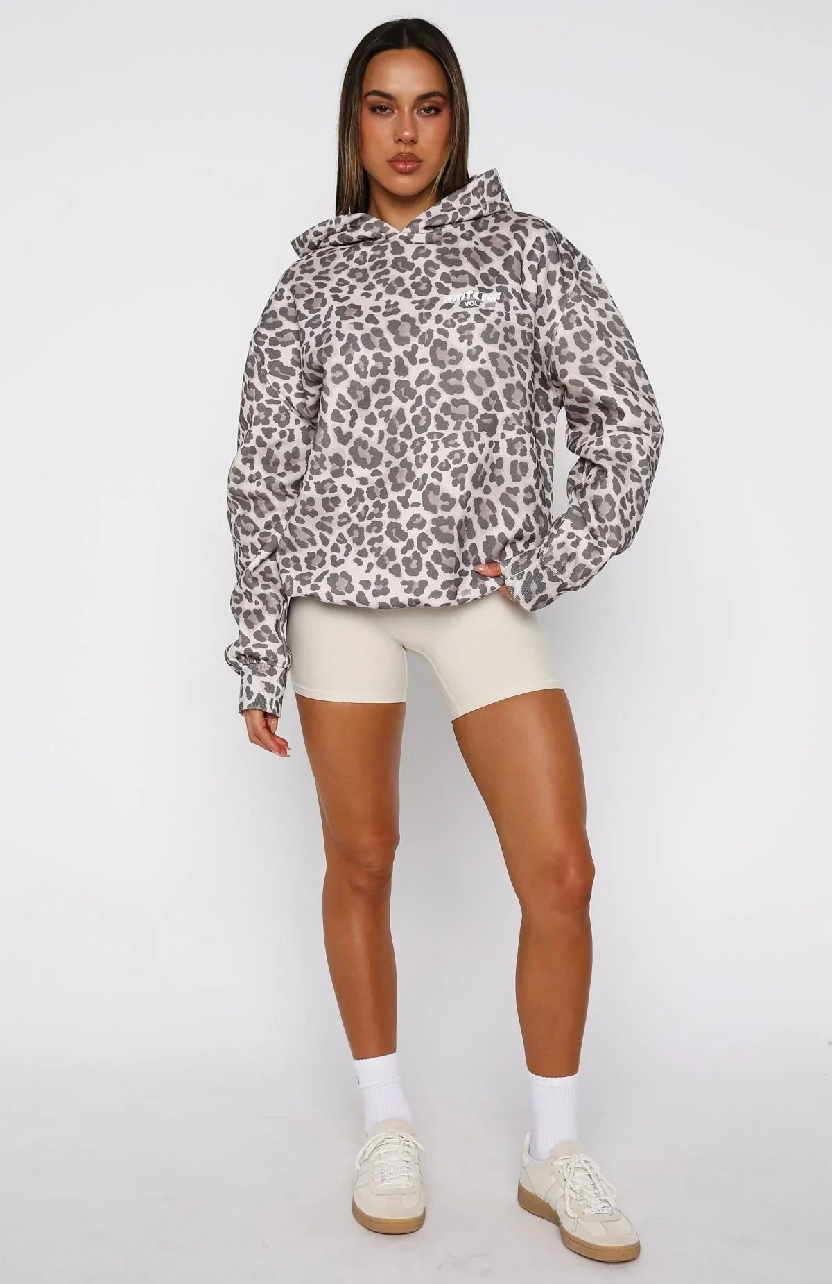 Designed for your downtime! The Offstage Printed Oversized Hoodie in Leopard brings easy comfort with an oversized fit, long sleeves, a roomy front pocket, ribbed cuffs and hem, and a hood. Bold puff‑print White Fox text lands on the side front and centre back for a signature touch. Style it with the matching Offstage Printed Oversized Tee in Leopard and your favourite denim for an effortless, cool combo.