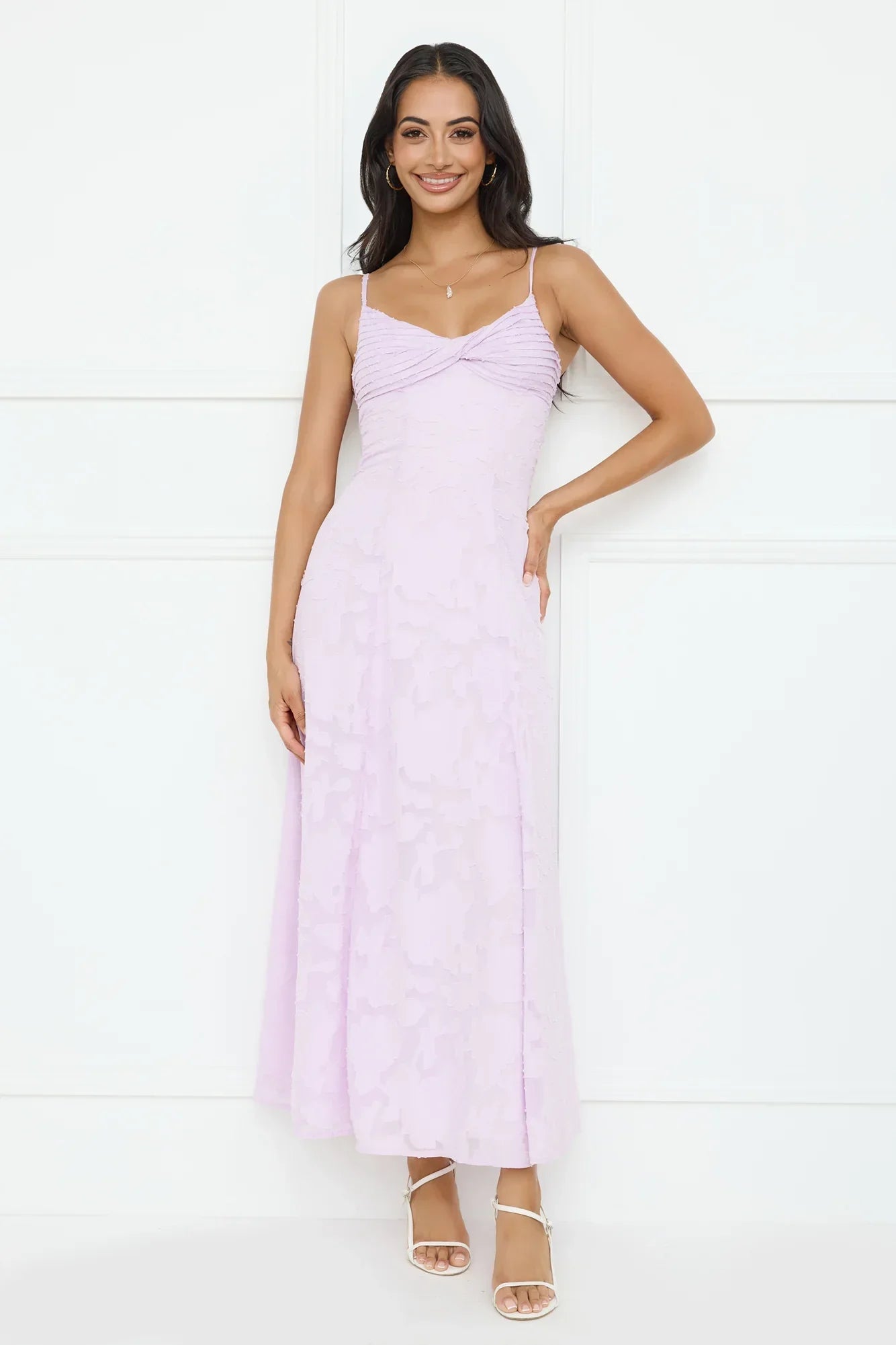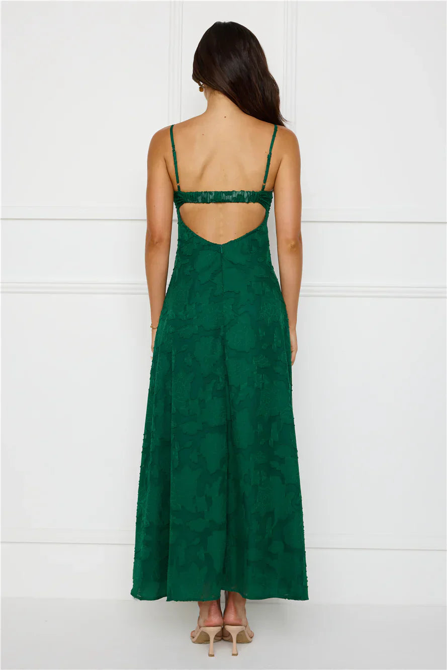 You're event ready now, lovely. Style the Pine Blossom Maxi Dress to impress. Featuring a pleated top, an elastic back and a gorgeous textured print. Style with heels and curls for all the likes!