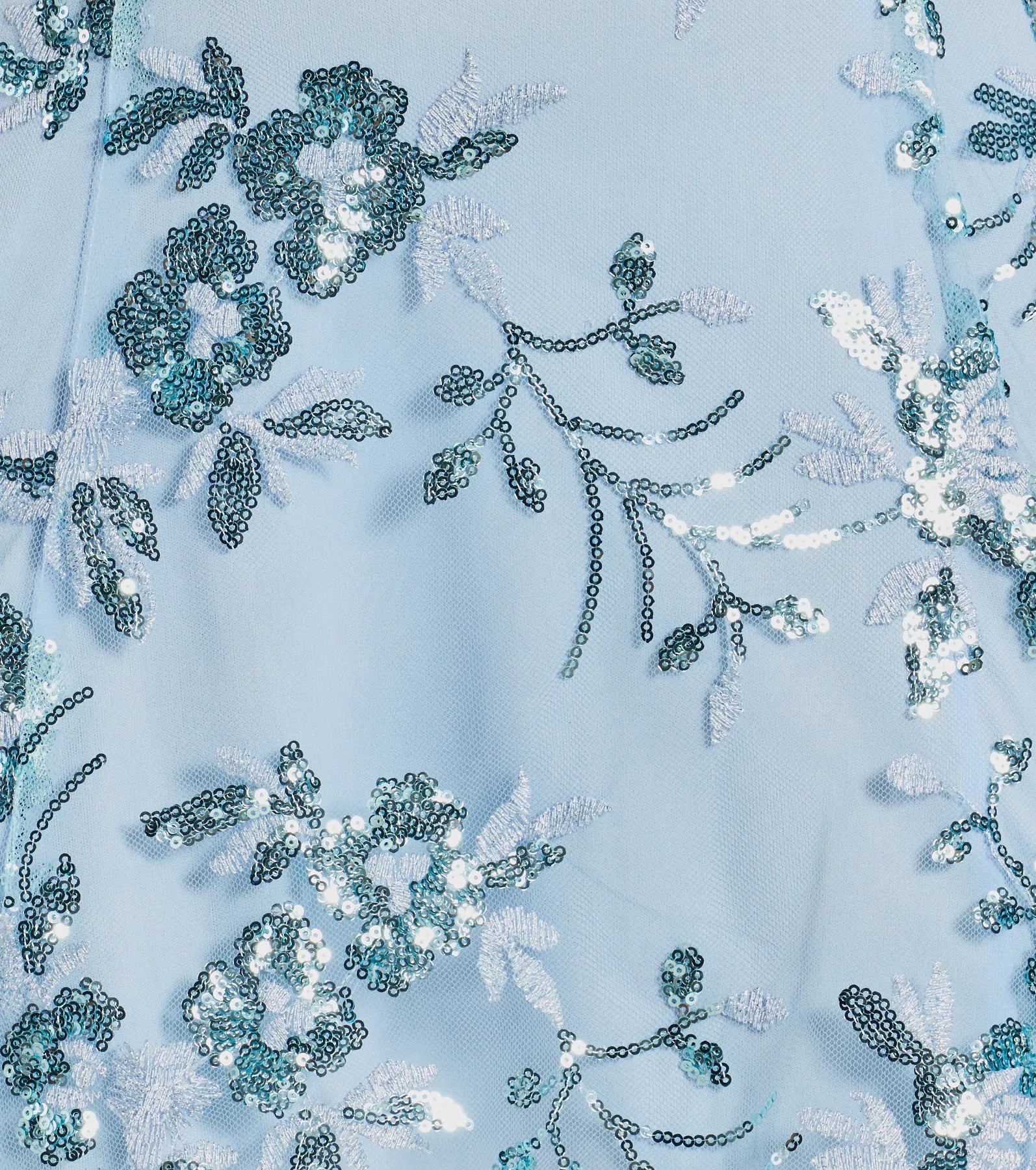 Radiate pretty elegance in this sleeveless mini dress featuring tulle shoulder straps that shape the striking lace-up back design and a flattering A-line silhouette. The sheer mesh fabric is decorated with a floral sequin embellished pattern perfect for a school dance or birthday.