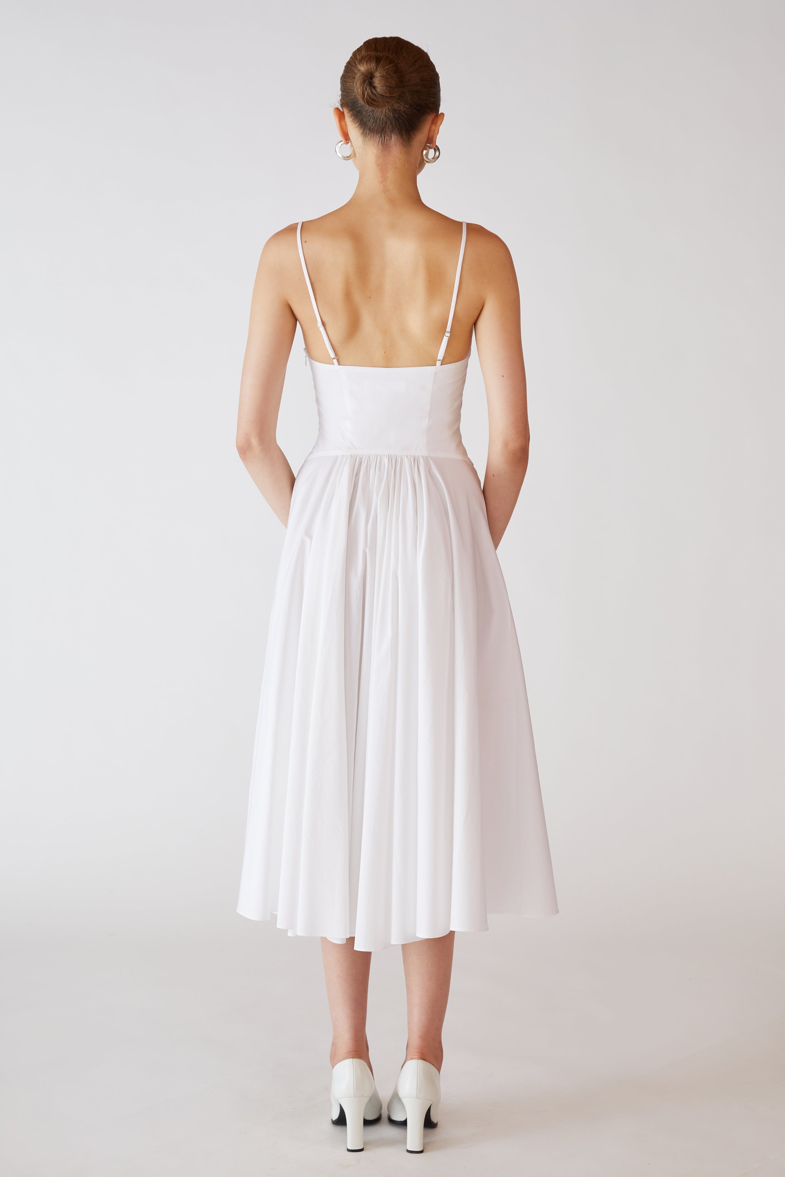 The Lady Cotton Dress is made from a soft, breathable cotton, designed and crafted in NYC. This tea length dress features delicate spaghetti straps and a flowy silhouette with gathered rouching at the center back. The perfect alternative to the classic Silk Princess Slip Dress, the Cotton Princess Slip Dress is a great option for those who prefer a more casual and comfortable feel.