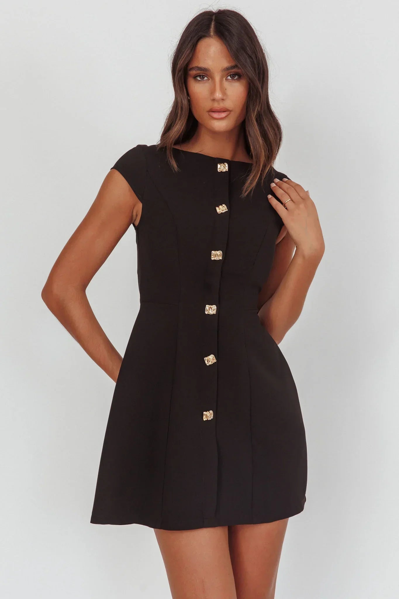 Turn heads in our gorgeous Rebel mni dress. It features a keyhole back and adorable cap sleeves. It's perfect for a wedding or special event teamed with black heels and a satin clutch for an elegant look.