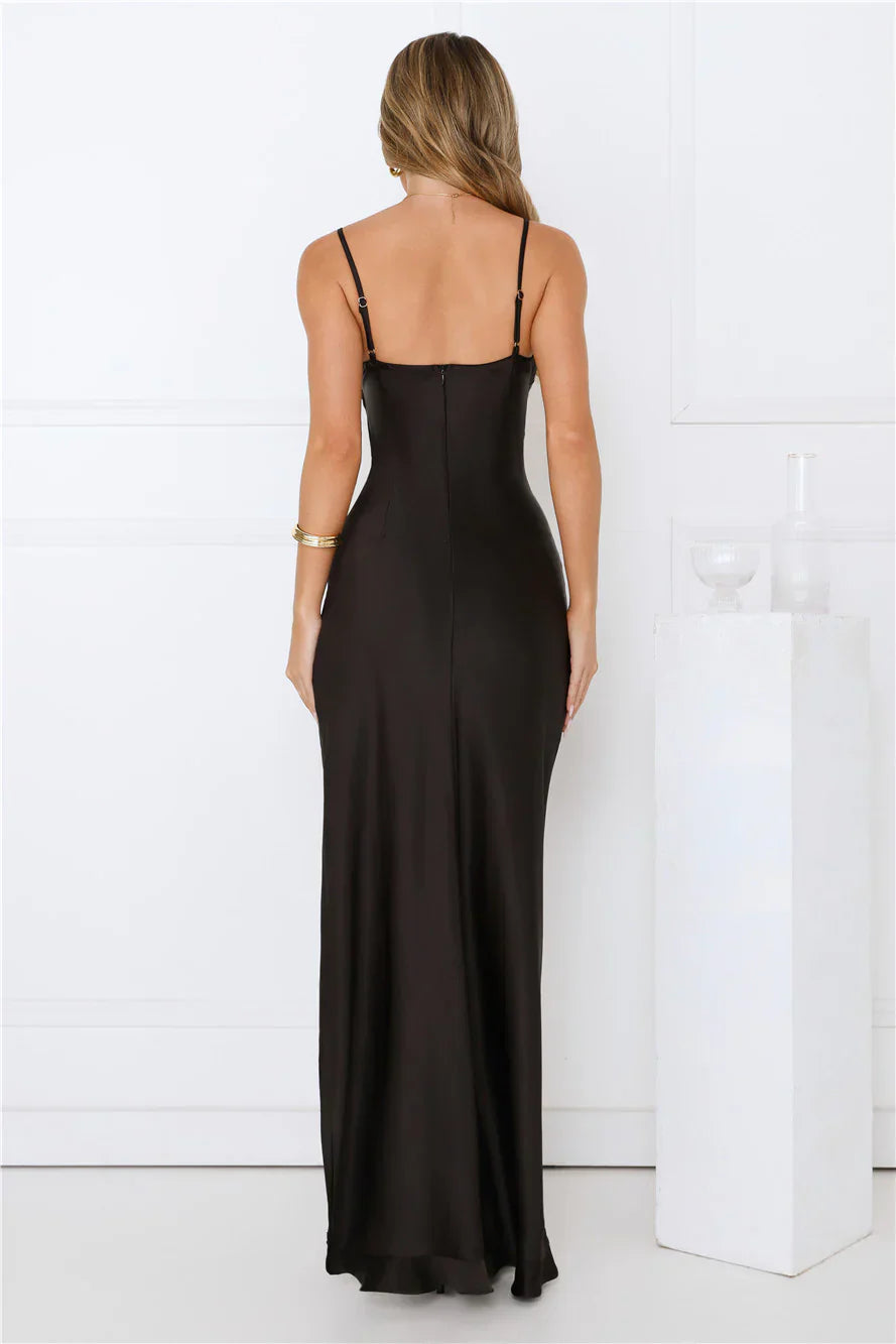 Soft, romantic, and ready to twirl — the Rosewater Kiss Satin Maxi Dress is made for those dreamy moments. With a flowy satin skirt, frill details, and a flirty split, this maxi brings the drama in the most stylish way.