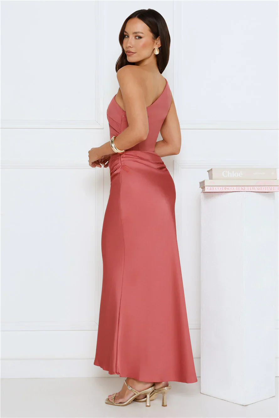 Shine in the Starlit Darling Satin Maxi Dress. Featuring a flirty one-shoulder neckline, gathered bodice, and a flowy skirt, this maxi is effortlessly feminine and perfect for parties, date nights, or any occasion where you want to feel chic and playful.