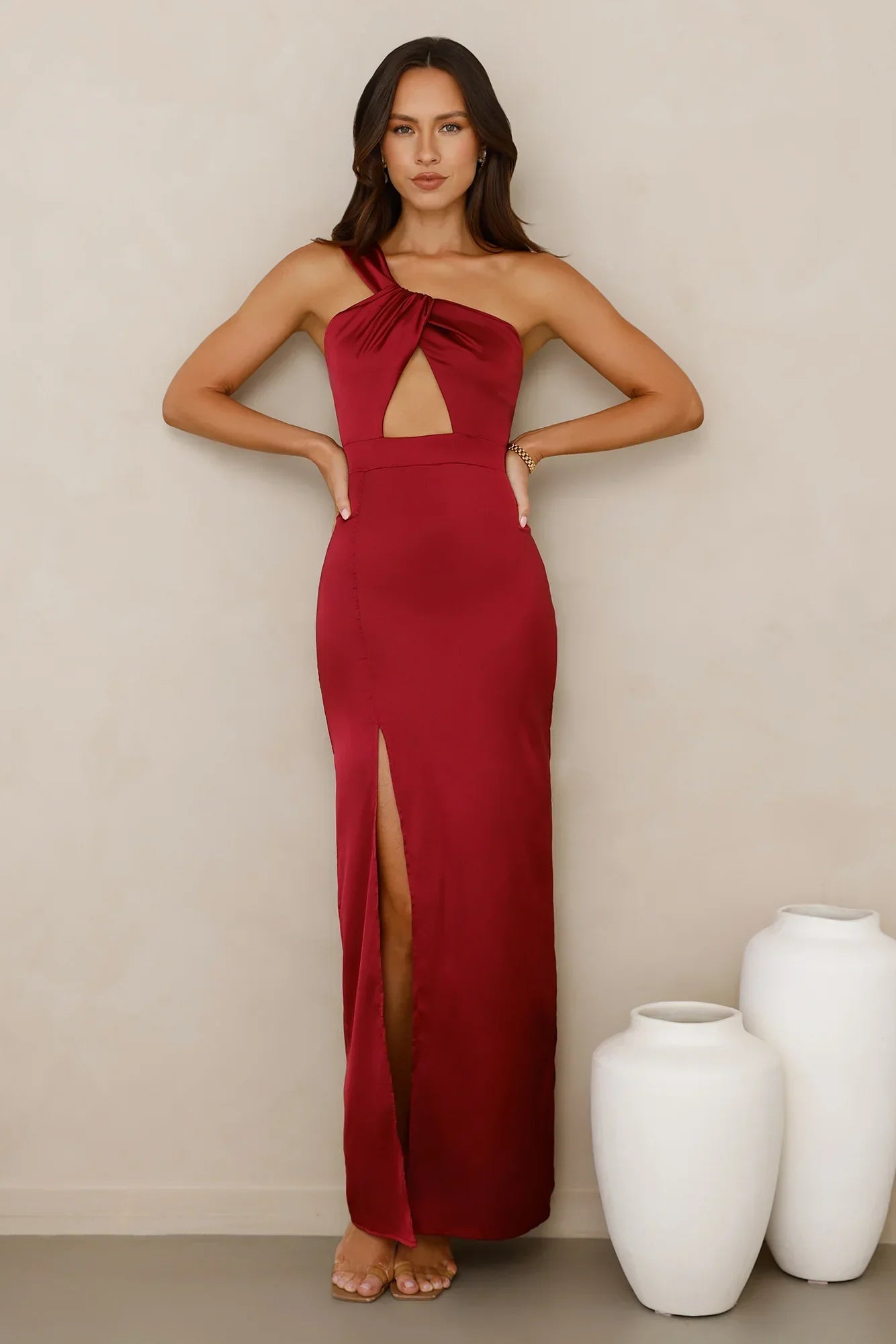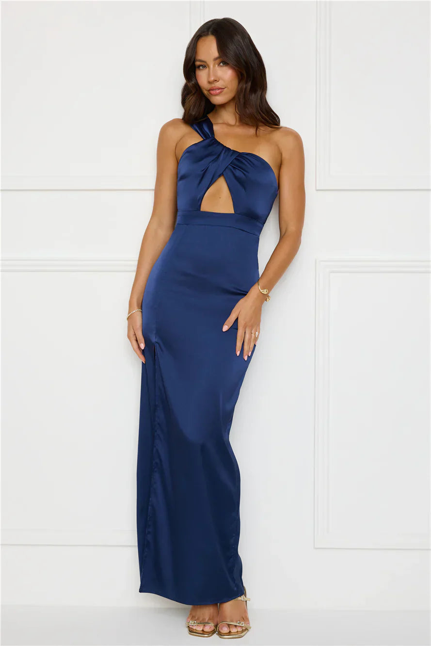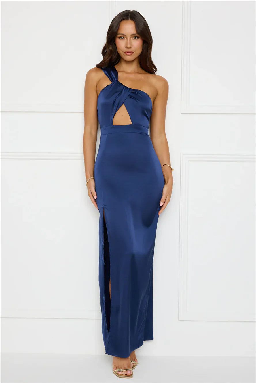 Turn up the allure in the Strong Desire Satin One Shoulder Maxi Dress, featuring a luxe satin finish, a sultry bodice cutout, a sleek one-shoulder design, and a straight flowy skirt with a flirty split for the perfect touch of elegance! Style with heels.