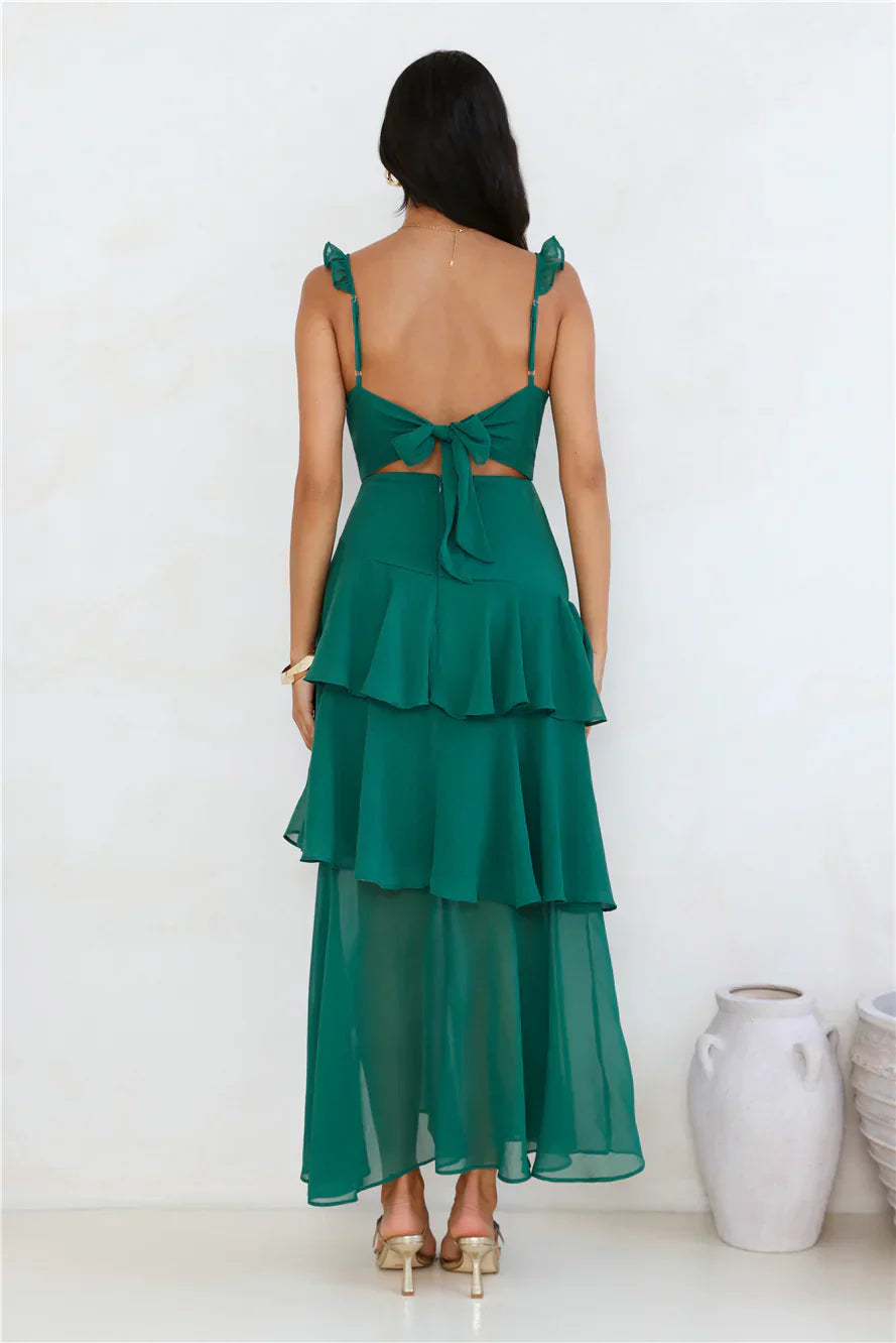 Be seen in a gorgeous style. The Trailblazing Maxi Dress features frilled shoulder straps, a statement tiered frill skirt and a tie-up back. Style with heels for a 'fit you'll want pics' in!