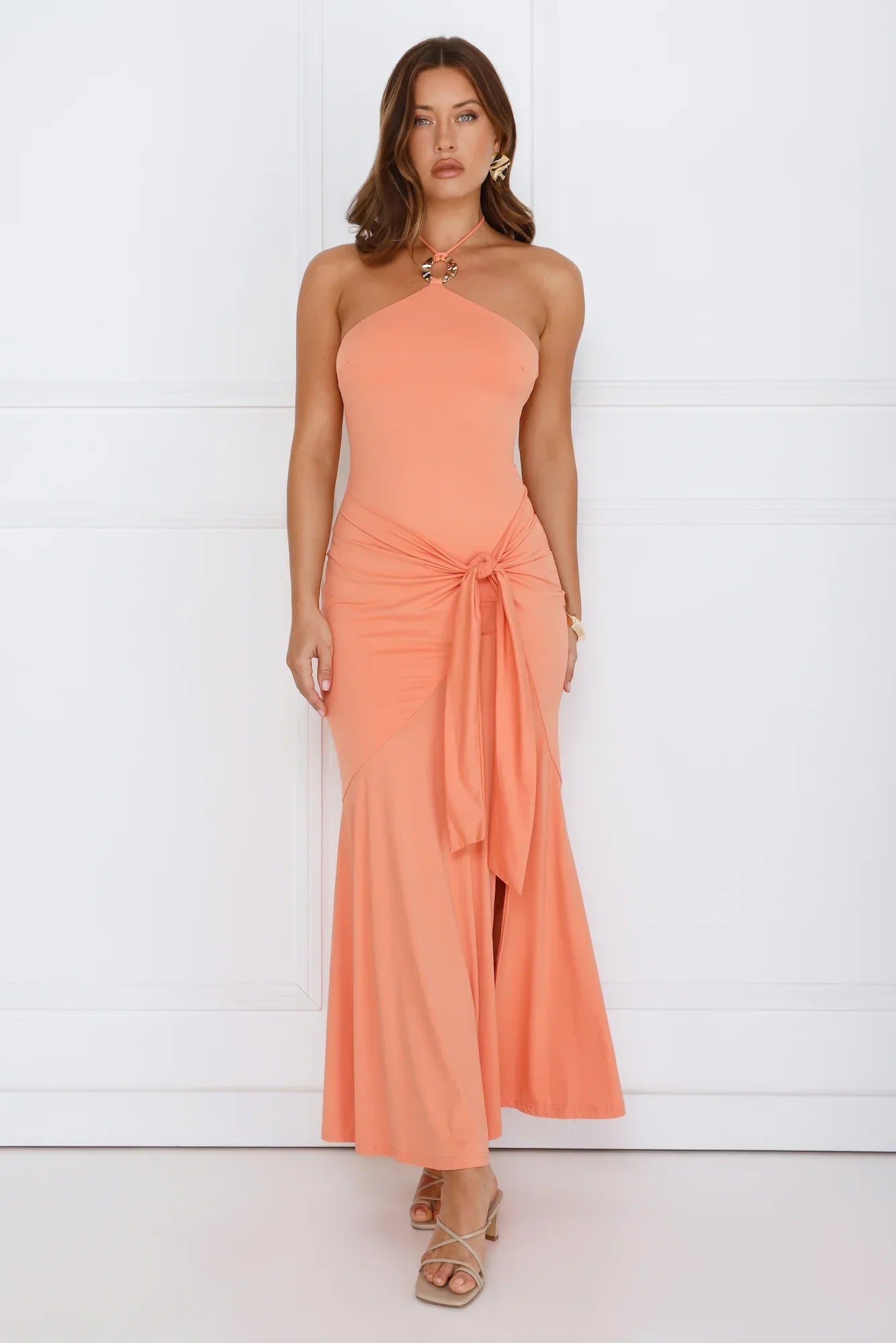 It’s your season to shine in the Twirl Season Halter Maxi Dress. Made from stretchy fabric that hugs in all the right places, this maxi features a flattering halter neckline with eye-catching detail, a wrap-style skirt with a tie waist, and a flirty split for added movement.