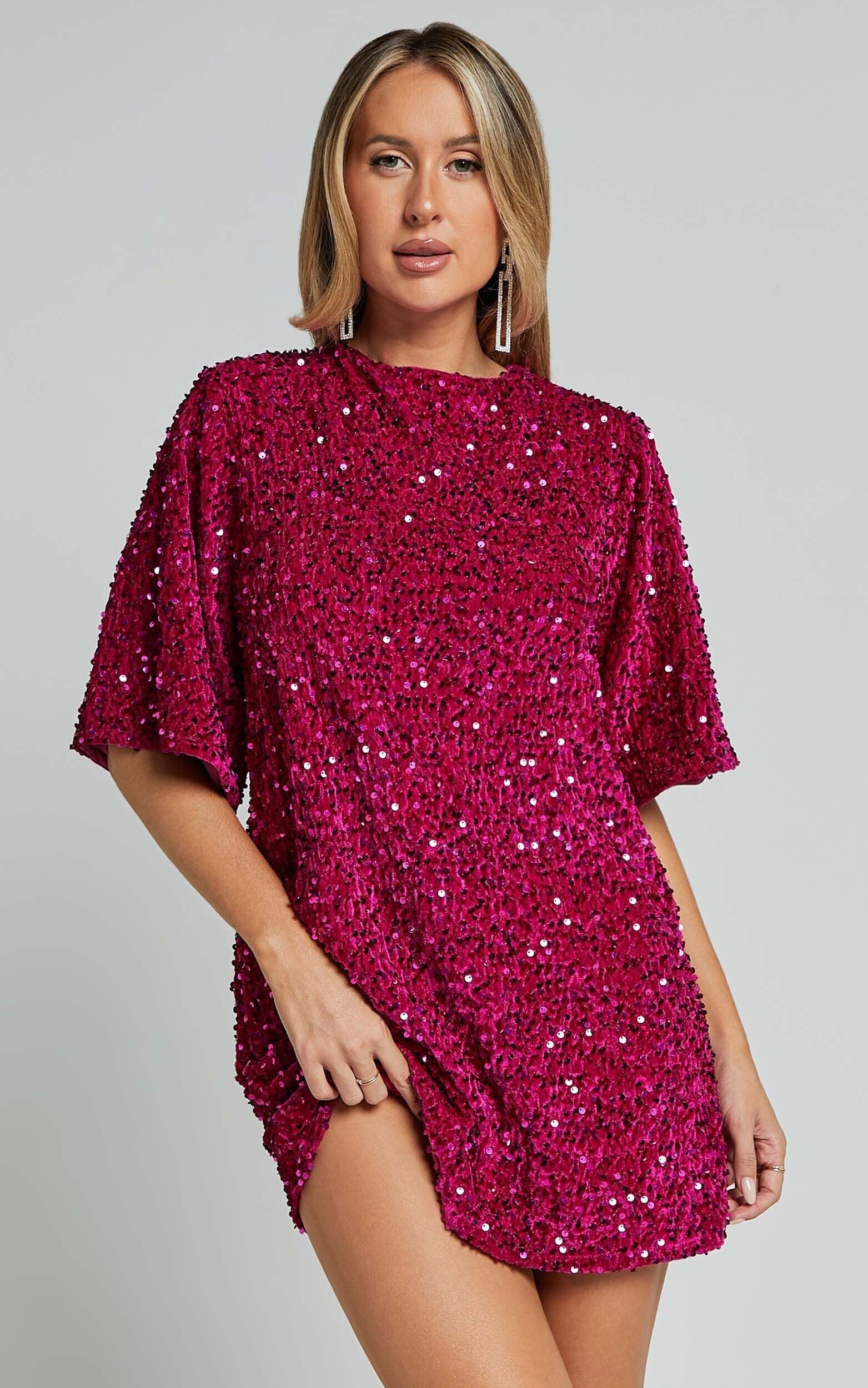 Get ready to turn heads in the Valetta Mini Dress! This hot pink sequin shift dress is perfect for your next party night. With its low back and playful mini length, it's guaranteed to make a statement. The long sleeves add a touch of elegance while the sequins will have you sparkling all night long. Whether you're hitting the dance floor or sipping cocktails with friends, this dress is sure to be a showstopper. So go ahead and shine bright like a diamond in the Valetta Mini Dress - because who says you can't have fun with fashion?Product Details:Backless sequin mini dressPerfect for parties and nights outLong sleeves add a touch of eleganceVersatile style for any occasionSize and FitSize S / 8 length: 82cm / 32.28inMaterial and CareSequinLow / No stretch