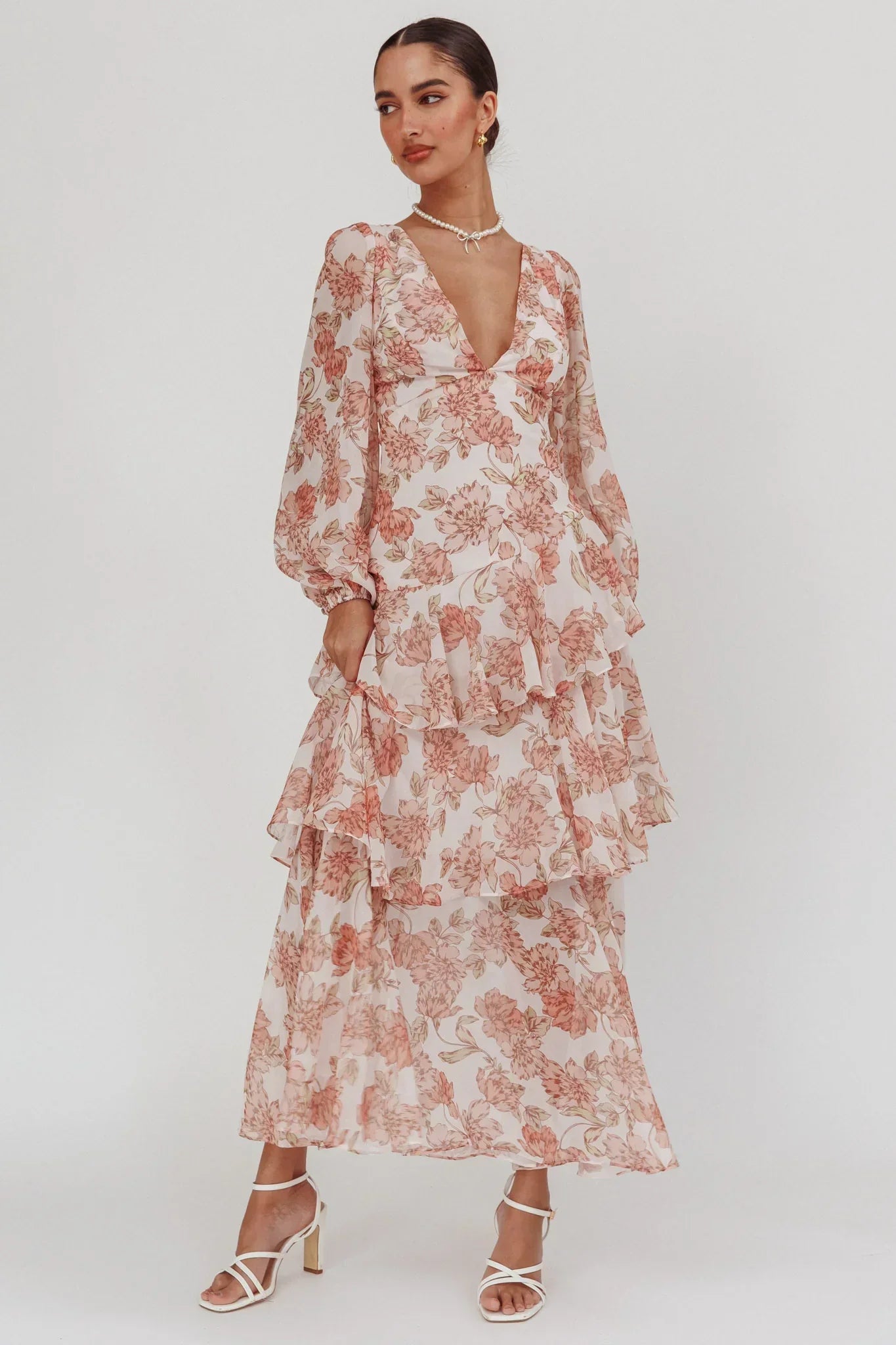 Jaws will drop when you float by in our gorgeous Veda dress. With its pretty, tiered ruffles and long puff sleeves, it's fit for a princess. Perfect for a special celebration teamed with heels and a tote for a dreamy look.
